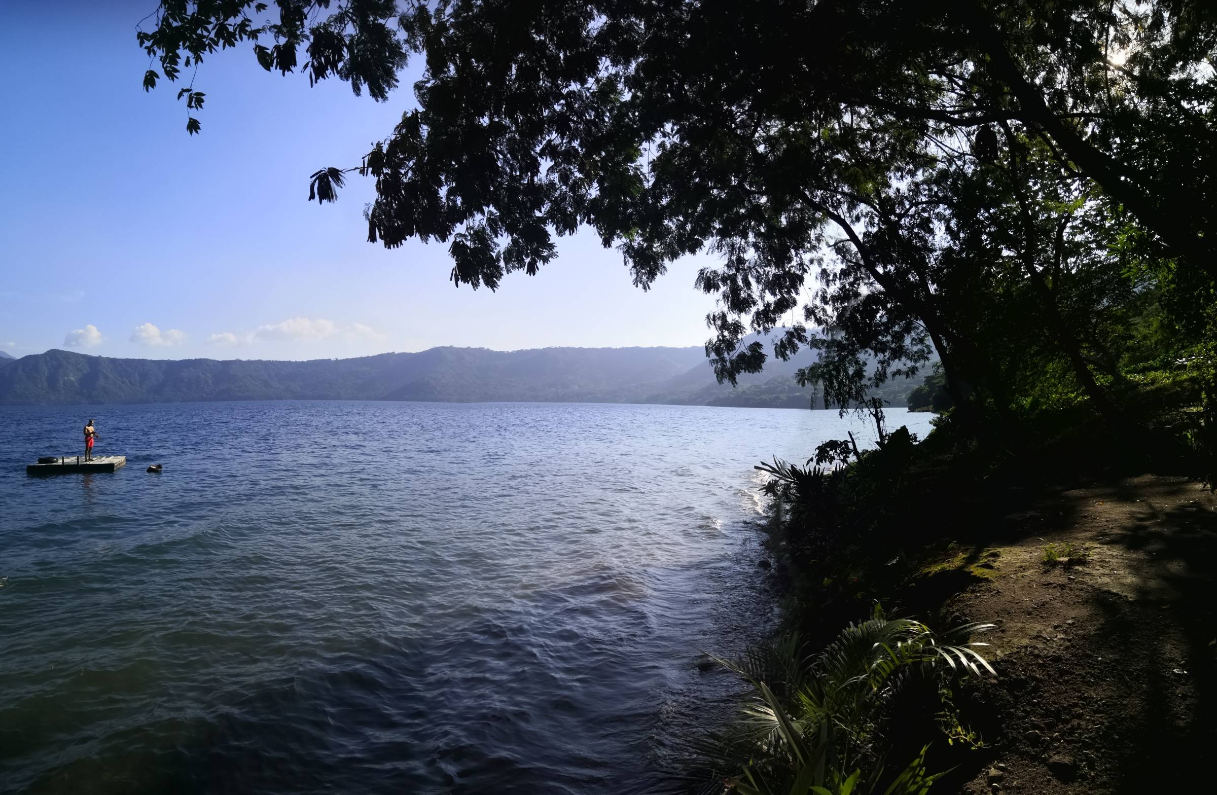 Le lieu est idyllique, frais, calme, avec une vision très sympathique sur le cratère et son lac. malheureusement le niveau du lac est très haut du fait des pluies de ces dernières semaines et la plage est recouverte par les eaux, donc pas dee balade autour du cratère.