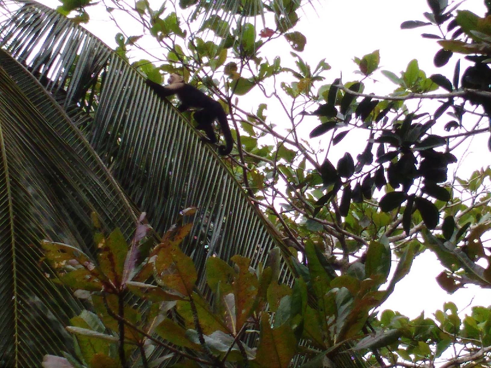 Après le repas, juste avant de partir en barque explorer la réserve côté eau, un groupe dee singes capucin me fait une démonstration de parcours arboricole avant de s’installer dans l’arbre au dessus de mon habitation pour un festin de feuilles (5 fruits et légumes par jour, ils ont la santé!).