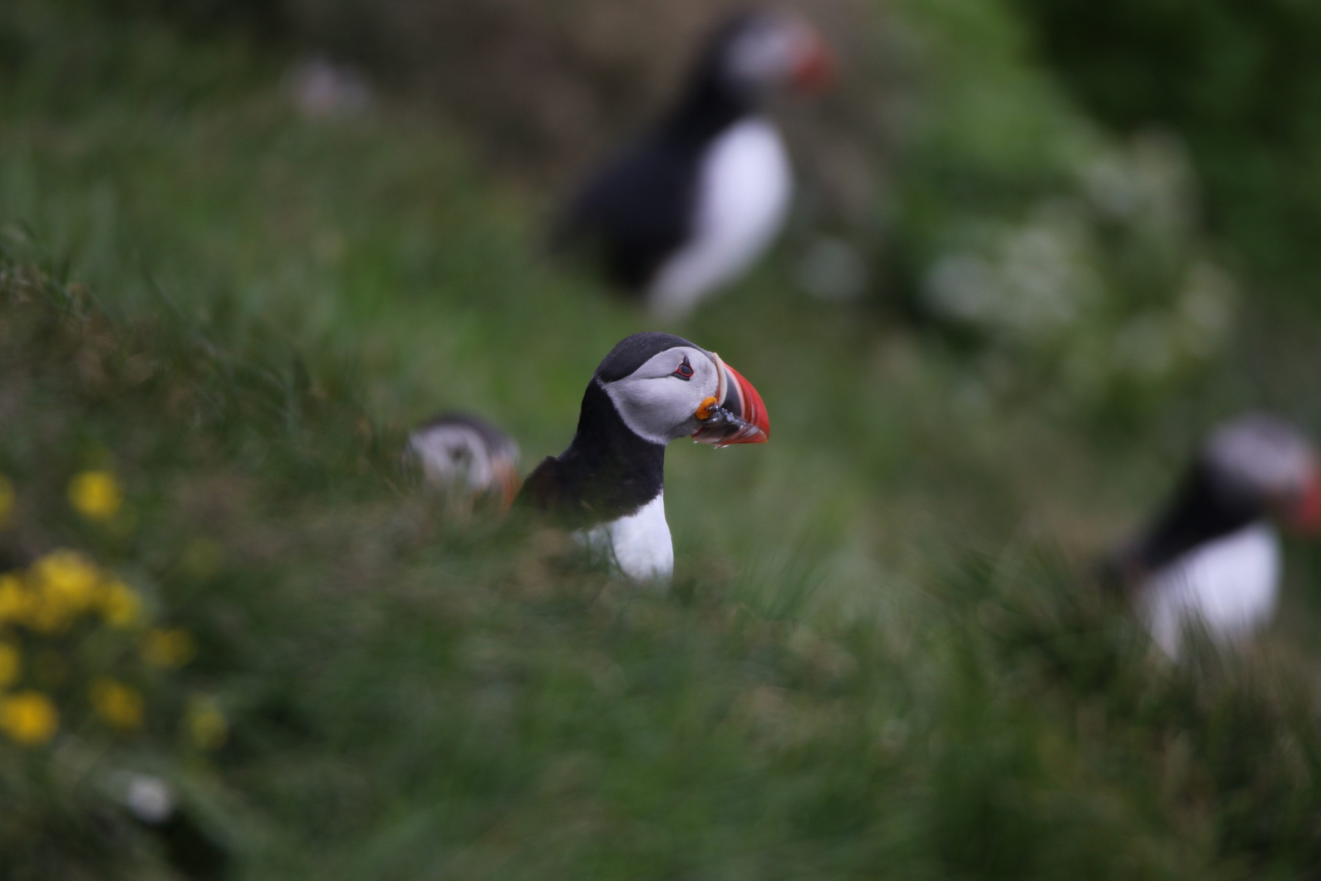 Nous arrivons sur l’ile de Grimsey, petite île de 5,3km2. Les oiseaux sont très nombreux et plusieurs colonies de macareux sont à proximité immédiate de notre logement. Nous partons faire une bonne balade sur la côte mais malheureusement vent violent et nuages se mettent de la partie. Il devient difficile de pointer les appareils photos mais nous réussissons néanmoins à photographier macareux, mouettes tridactylen(avec poussin et œuf), des chevaliers gambette et des bruyants des neiges.
