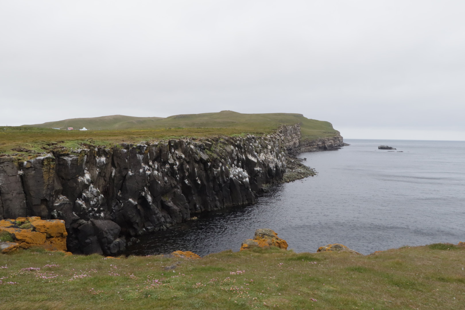 La traversée est plutôt tranquille avec quelques animations. En lever de rideau des macareux, des mouettes tridactyles et des guillemots. A suivre, nous voyons des baleines globicéphales (mais seulement les ailerons), et en final des dauphins au l’on faisant des cabrioles.