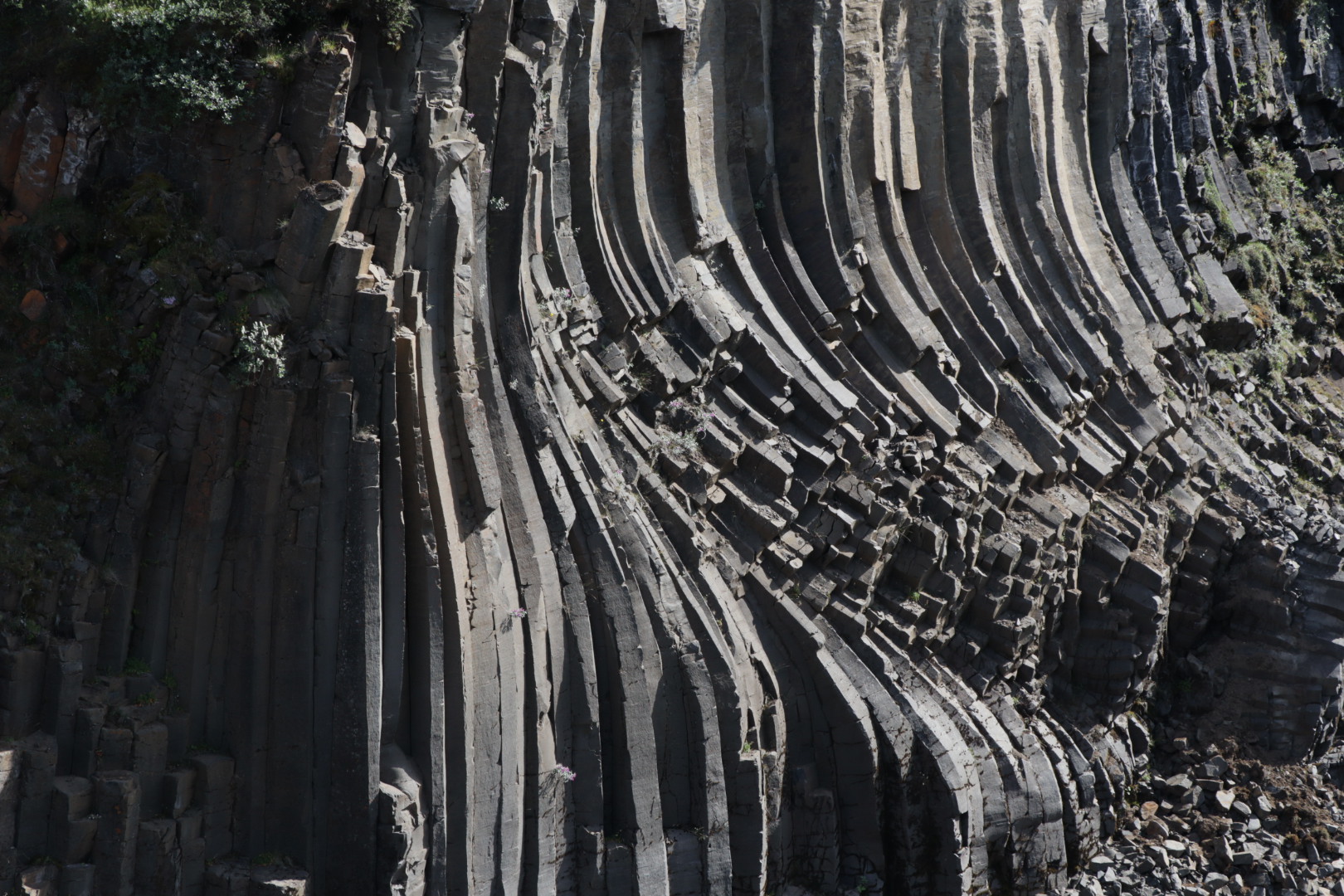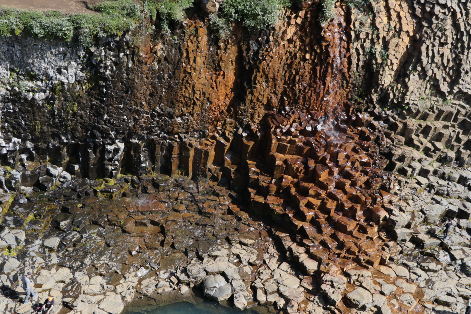 Direction ensuite Studlagil Canyon, un canyon très impressionnant surtout par ses orgues basaltiques torturés. Ceux-ci sont verticaux, mais également horizontaux et même courbés, preuve des immenses forces qui ont été mises en œuvre ici. Sur le site une pancarte indique Pôle Nord, 5217km, mais je me sens un peu fatigué et décline la randonnée !
