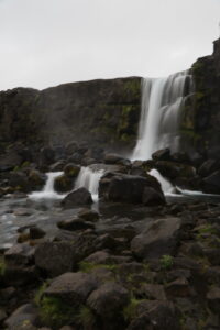 Ensuite direction Þingvellir (si j’ai bien compris le Þ se prononce un peu comme le th anglais). Il s’agit encore de la faille medio-atlantique mais c’est aussi, et surtout un haut lieu de l’histoire Islandaise. C’est là que se tenaient les assemblées des parlements Islandais de 930 à 1798 (avec des pouvoirs variables en fonction des puissances gouvernantes). C’est aussi la que fut proclamée République d’Islande et 1944.