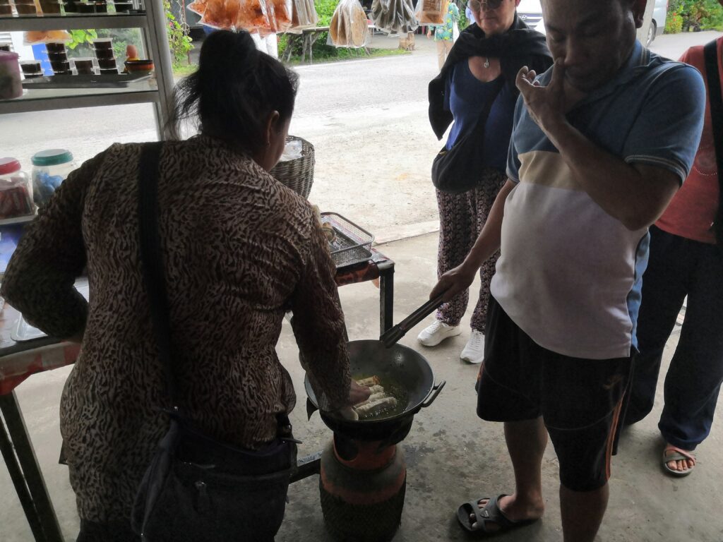 Ensuite nous degustons quelques nems très simples (pousses de soja dans une galette de riz) préparées et frites devant nous.