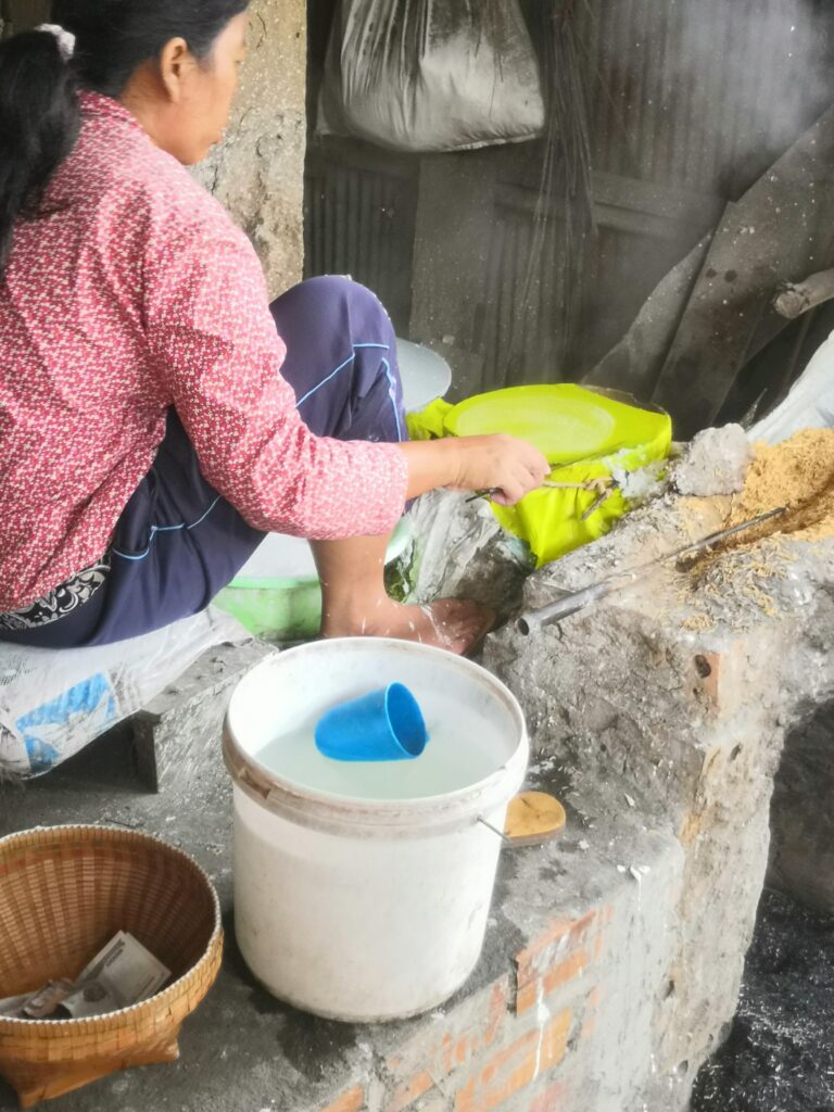 L’eau est chauffée avec les écorces de riz qui sont ensuite réutilisées, par exemple, pour amender les sols. A savoir que 50 galettes coûtent environ 1$.