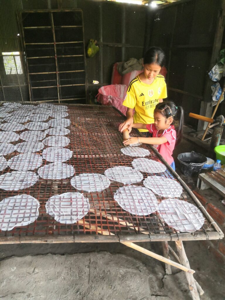 Nous débutons la journée par la viste d’une fabrique artisanal de galettes de riz.